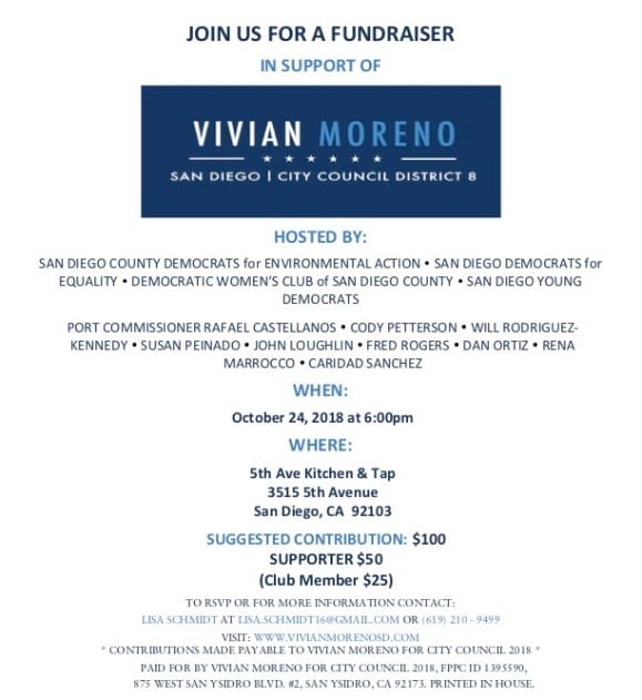 Join us for a fundraiser for our endorsed candidate Vivian Moreno for San Diego City Council District 8 along with San Diego Democrats for Environmental Action, San Diego Democrats for Equality and San Diego Young Democrats.